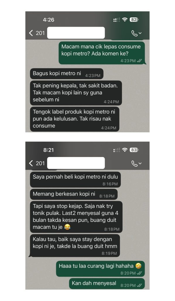 " Dah cuba banyak produk tapi kopi Metro yang terbaik "